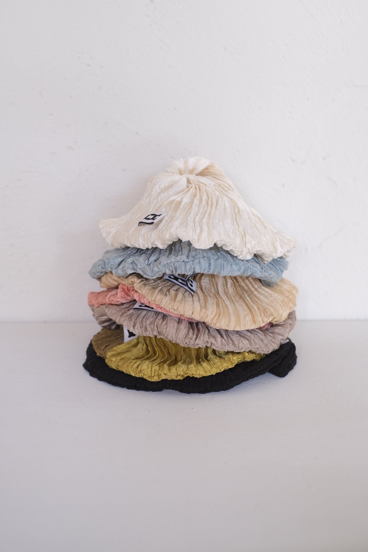 デザイナーの2人が自ら金型や機械を使わずに手作業で一つ一つ丁寧にプリーツ加工を行っています。